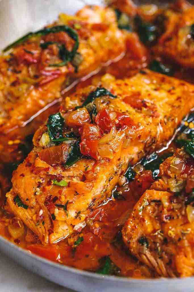 Tuscan Butter Salmon in Tomato Spinach Cream Sauce