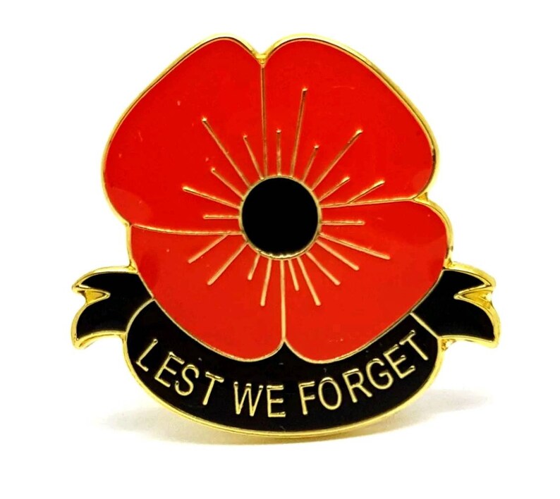 Black Lest we poppy pin badge Etsy